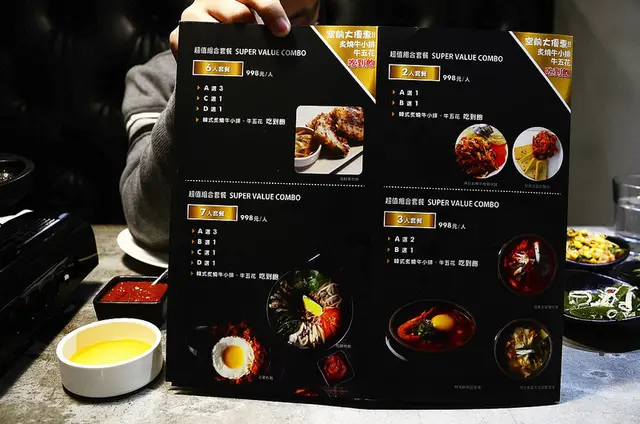 除了肉品之外,還有無限量的小菜和可依照人數選擇的組合套餐,