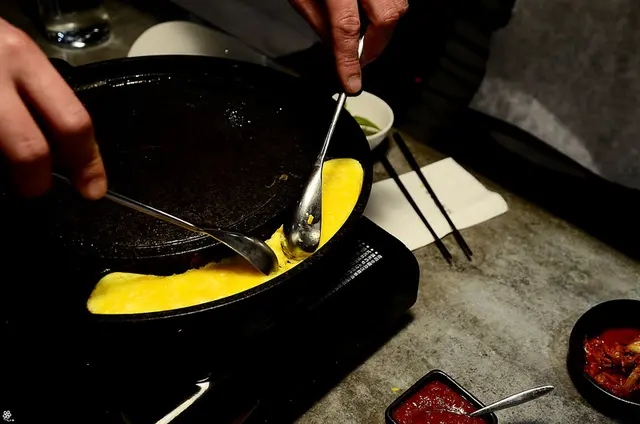 用餐當天,Major K 主修韓坊的服務人員一開始便幫我們烘烤起司蛋,