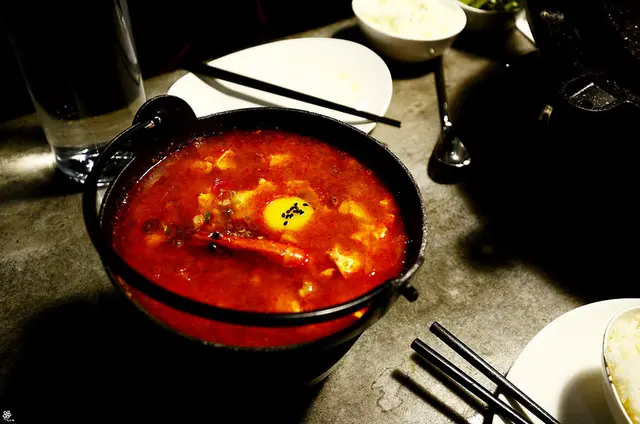 其湯頭是採用韓國生蝦醬、韓國辣醬等加以熬煮,