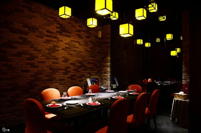氛圍營造得相當沉穩,在鵝黃燈光下的鮮紅餐巾更顯亮眼,