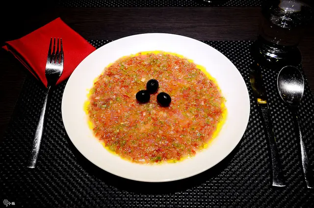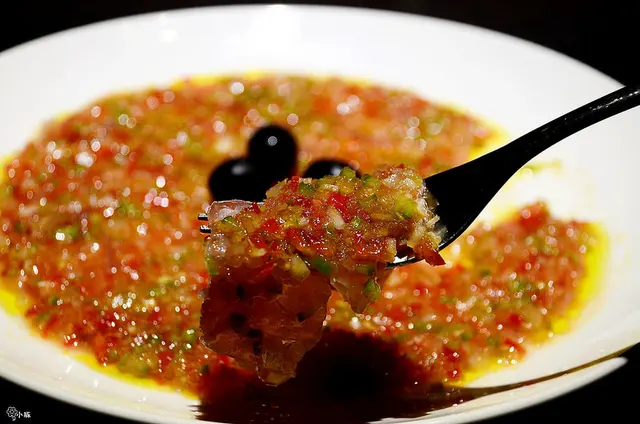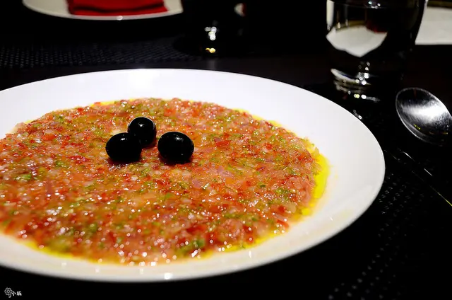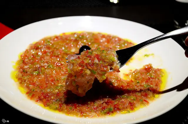 以刀叉托起一片入口,微酸氣息清爽開胃,橄欖油香氣也很迷人。