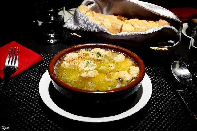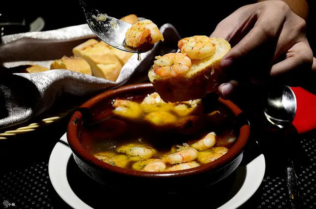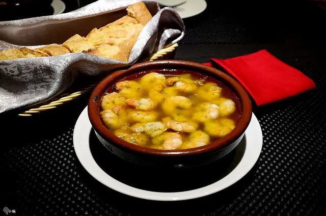 被橄欖油覆蓋的蒜煮鮮蝦,
