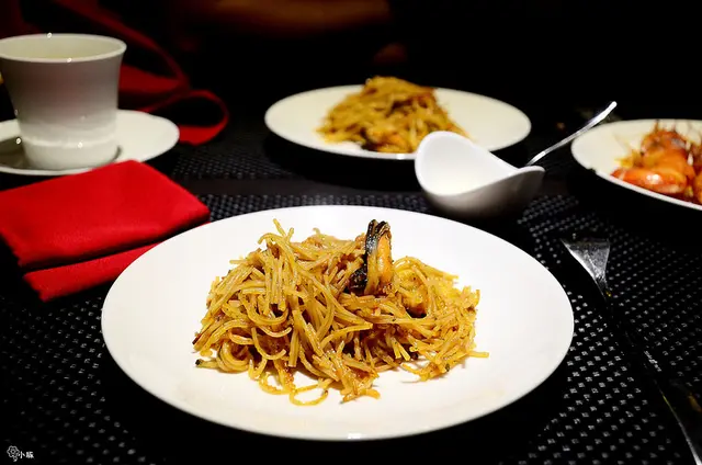 表層的麵條口感較脆硬,底部則是吸附醬汁而顯滑順,