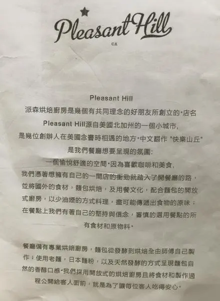 這裡是採取客人自行至櫃檯點餐結帳的方式,故沒有收服務費,但是PLEASANT HILL的服務很好,餐點C/P值又高,即便有收服務費我想大多數的客人也是會付得心甘情願。
