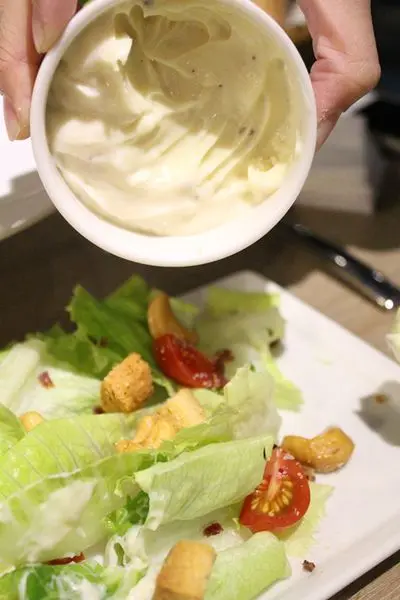 我們超愛這碗特調凱薩醬,口味深得我們的芳心,即使單吃醬也OK(←完全本末倒置的兩個人)