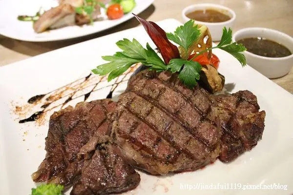 牛排的份量挺大的,肉也很厚實,烤得恰到好處不會難以切割,上面的網紋則讓想人立馬想把它塞進五臟廟!肉本身有點韌性,但不至於難以吞嚥,說真的,我好久沒吃到如此優秀的牛排了(手持牛排感動微笑)