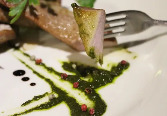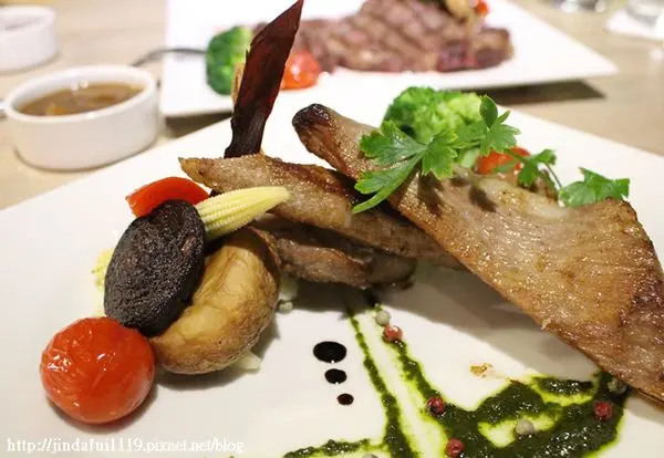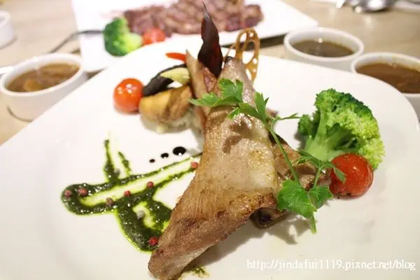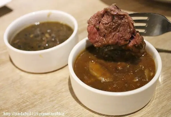肉質鮮嫩,即便不沾醬原汁原味的吃也很好吃,不過沾店家附的蘑菇醬或黑胡椒醬也不錯,個人較偏好黑胡椒醬,友人則是較喜好蘑菇醬