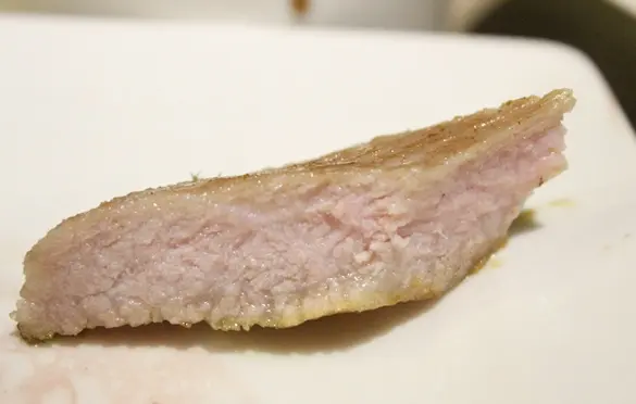 將松板豬切開橫面,粉嫩嫩的色澤好引人犯罪阿!!!(流口水)