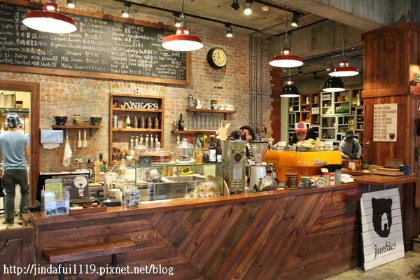 CAFE JUNKIE小破爛咖啡店離捷運小巨蛋站很近,讓身為外地人的我也能輕易的抵達,個人認為雖然在巷子當中但是棕熊的LOGO很顯眼,且整家店很寬敞明亮