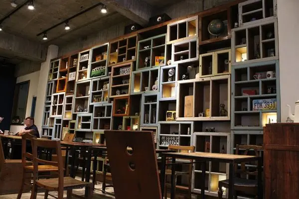 小破爛相當吸睛的一面牆,由許多廢棄窗框構成,內含各種復古的物品,像是車牌和古董相機