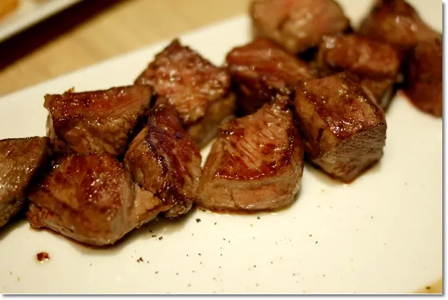 採用澳洲原塊板腱牛肉,以高溫鉄板嫩煎鎖住肉汁,再以低溫進入肉質深層、慢慢熟成