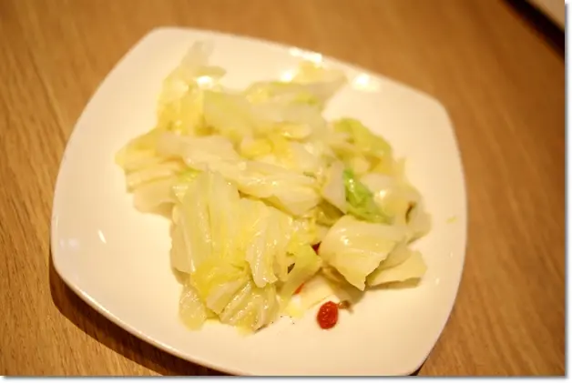 加入了枸杞、大蒜一起拌炒的高麗菜,沒有過度調味所以吃起來非常清脆且鮮甜