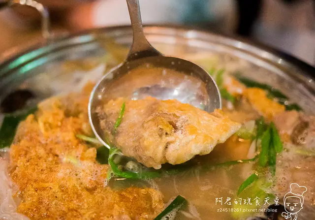 ▼台中大甲芋頭,加上一整隻酥炸過的白鯧魚,切成塊後下去熬煮,最後撒上大量的蒜苗,湯頭好濃郁。