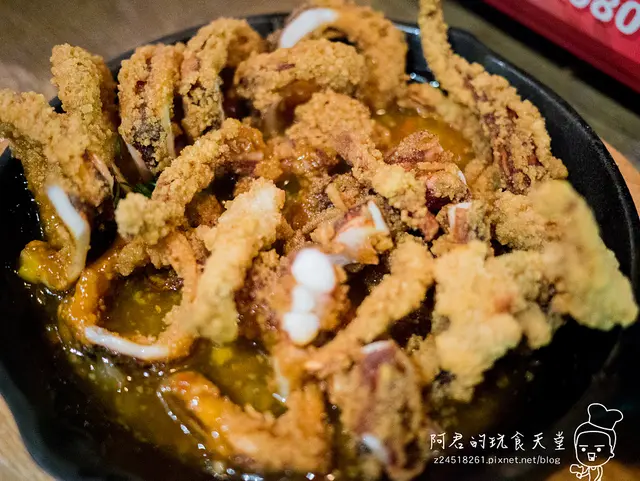 ▼酸甜酥炸魷魚花$240,超大一隻魷魚,拍完照之後,店員就會把牠剪開了。