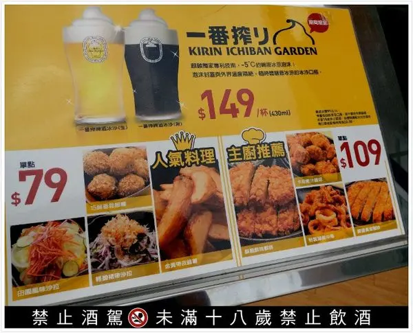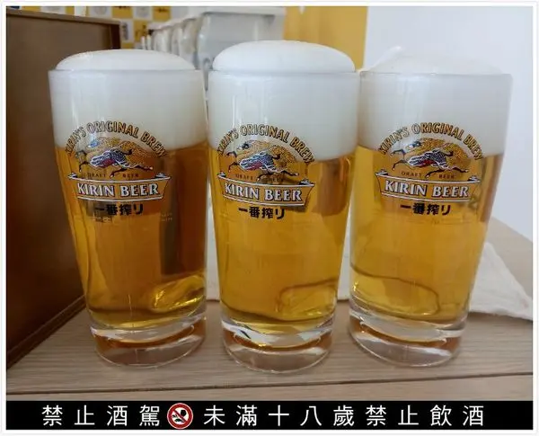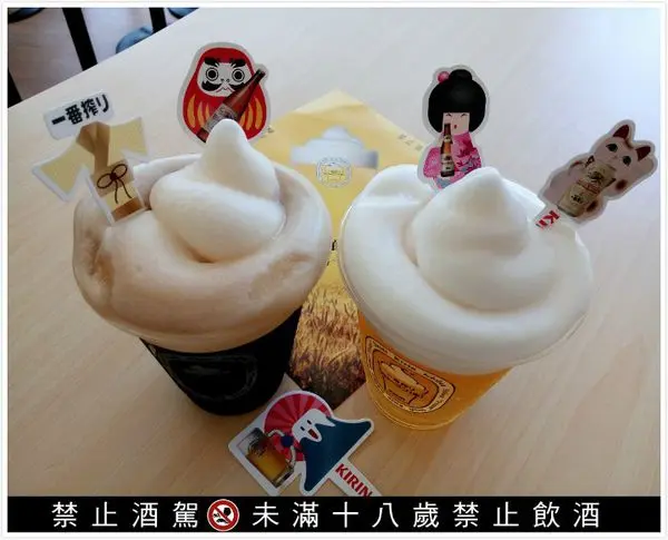 金黃色澤的KIRIN 一番搾,先飲吮著上層的白色冰涼冰沙,讓涼意直上腦門