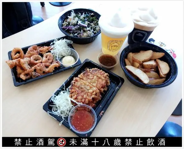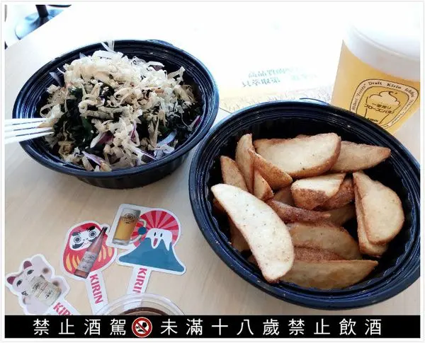 在白黑冰沙碑酒的加持下,伴上美食是酥脆鮮味蝦排、特製海風中卷、金黃帶皮脆薯、輕盈裙帶沙拉來享用