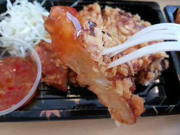 在口中可以先吃到外皮的咔哩咔哩的口感香氣,再到內裡的蝦排氣息,讓口感一整個滿足
