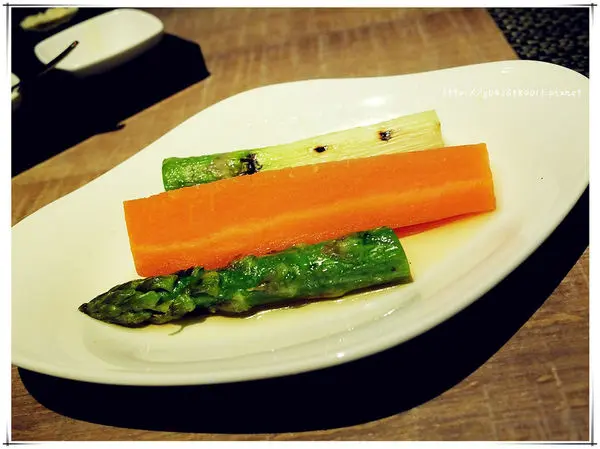 牛排的配菜是焦糖桂花紅蘿蔔&澳洲蘆筍