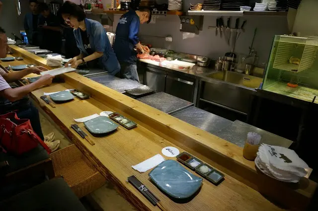 ▲如同日式板前般的設計,可以讓食客在此近距離接觸感受到食材料理與備料的各項過程。
