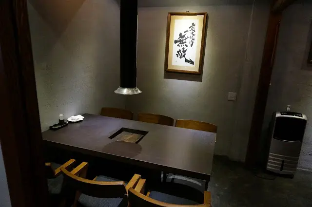 好了,基本的環境內外的巡禮完畢後,當然要來就坐一下品嚐一下無敵燒肉了,此次以一樓吧台前的用餐處為主。