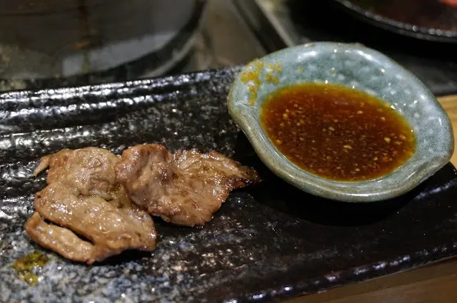除了先以原味來品嚐到肉質本身的美好外,更把每一個沾醬都來嚐試一番,而先前未沾取到的烤肉醬和檸檬汁二者,更透過牛小排的引線來與這二個沾醬譜出美好的享受詩篇,以特製烤肉醬品嚐到肉質細緻與提升鹹甜風味的拉扯,再到檸檬汁充滿酸性卻又清爽的口感讓吃燒肉更是多了好幾分有趣的享受。