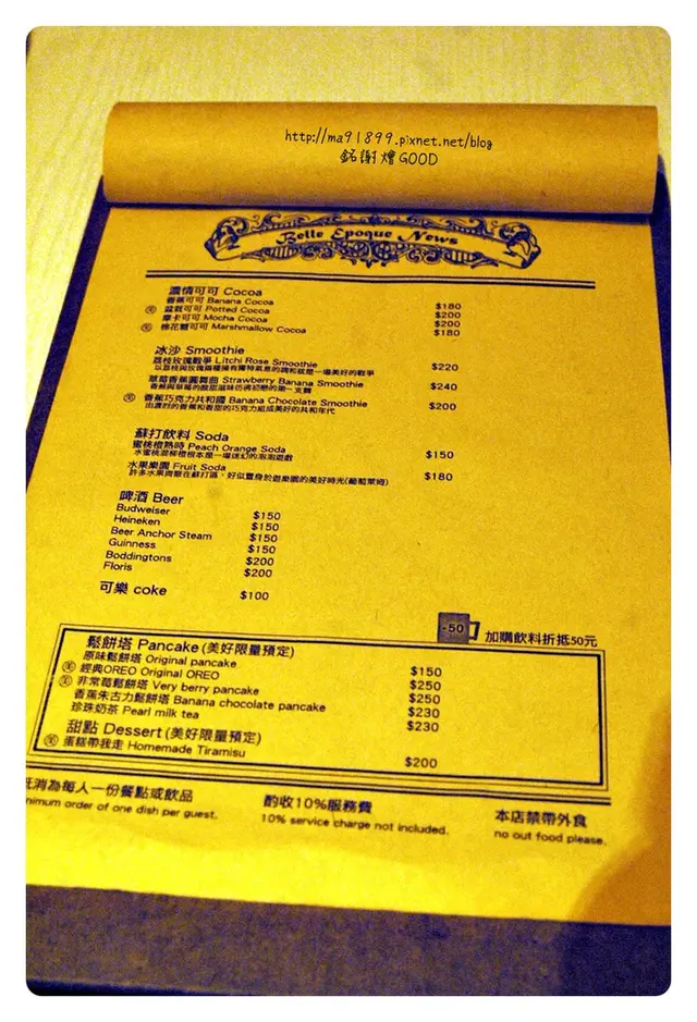 還有主打甜點的Pancake系列與各式飲品,價約都在NT120~300之間,要注意的是有加一成服務費喔