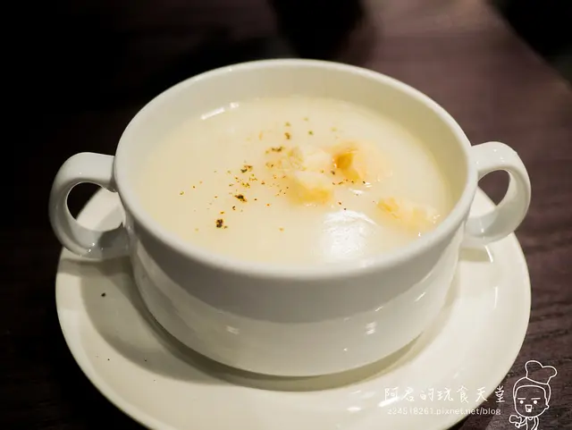 ▼奶油濃湯$100,奶味濃郁,除了酥脆的麵包外沒什麼料,價格一百元感覺有點偏高。