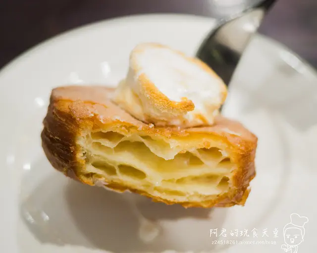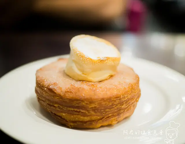 ▼焦糖糖心可頌甜甜圈$60,上面有烤過的棉花糖,再撒些糖粉,但是吃起來不會因為太甜而覺得膩,外皮烤得微焦酥脆,同時也香氣十足,雖然吃完了麵,但是還是讓人食指大動呀。