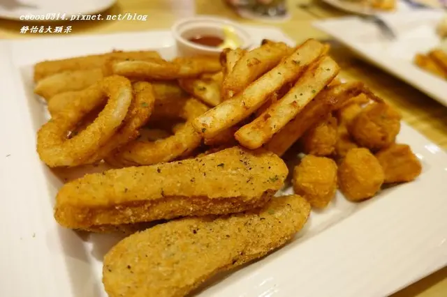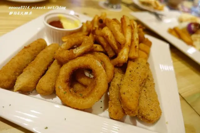 有雞柳條,起士條,洋蔥圈,薯條及炸雞球