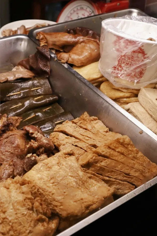 其中最喜歡滷到鹹香的豬血糕、飽滿甜鹹的甜不辣。