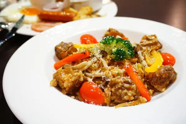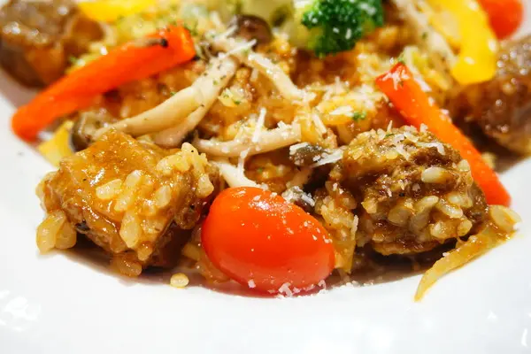 一旁的甜椒和配菜點綴也多了點蔬菜甜味的來源