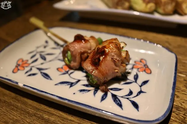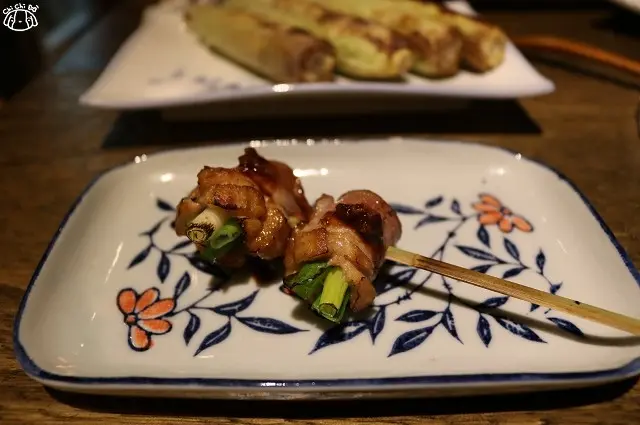 鴨肉多汁,捲起包裹大蔥段,外層刷上甜甜的醬汁。
