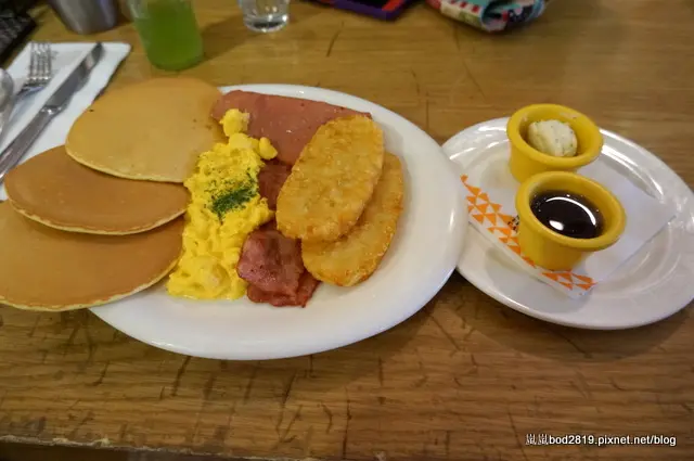 所以當然是點早午餐嚕,這款是美式煎餅組合,