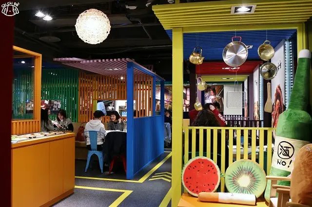 裝潢色調繽紛,相當熱鬧有趣。桌上設有服務鈴按鈕,就不用癡癡得等待服務人員經過~