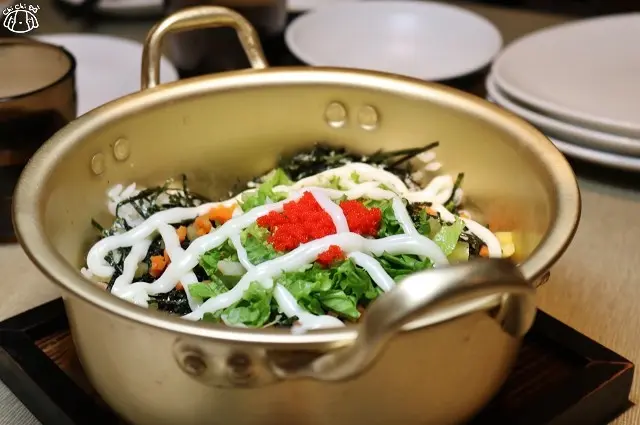 火鍋附日式黃金雜炊粥或是韓式燉炒飯,這道我從頭到尾都沒吃到XD.