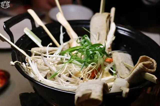 歐殿湯是我覺得最特別的一道,竹棍上那片片捲起的不明食物,