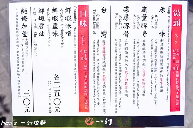 一幻據稱是史上最夢幻的拉麵,理由是採用大量的甜蝦頭熬煮做為湯底。