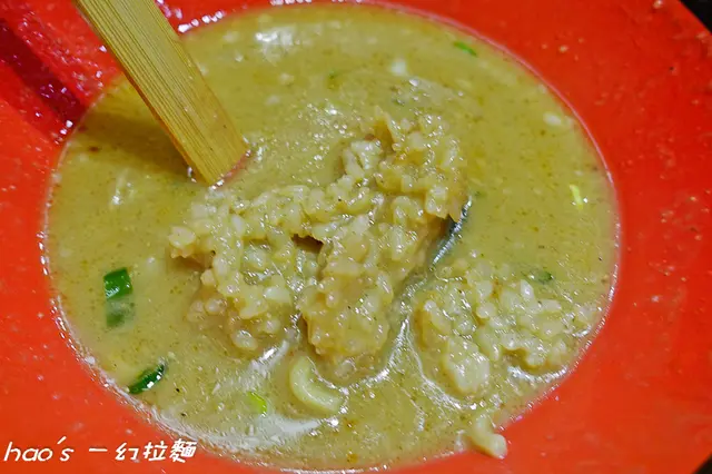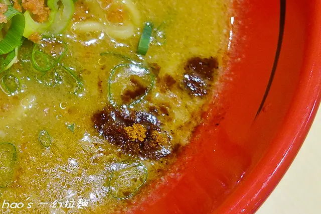 拉麵中加有紅色細屑,看照片時我還以為是蝦卵之類的,結果一嚐發現似乎是麵酥,