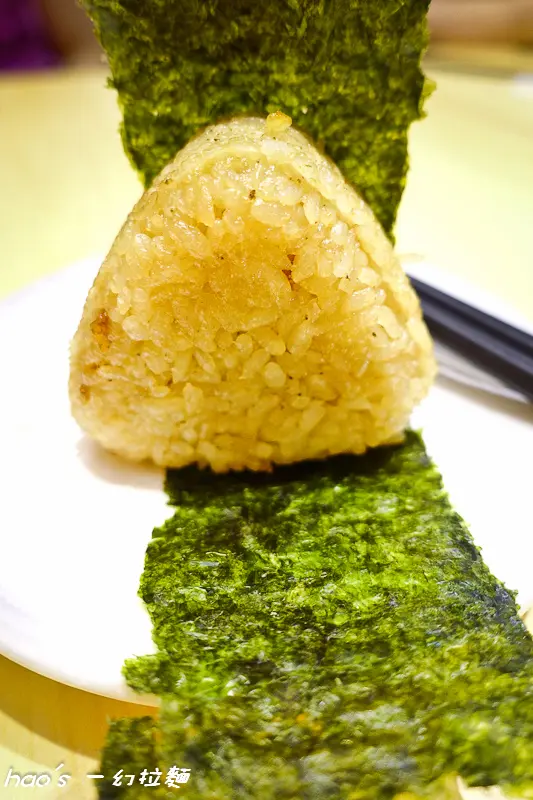 海苔吃來淡而略帶海味,飯糰倒是有著鮮蝦香味,口味清淡,口感偏軟,我個人還滿喜歡的,