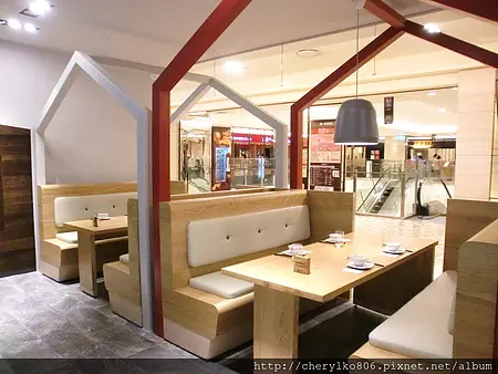 這紅白相間的雅座看起來挺可愛,只是靠近外側百貨公司走道,用餐時旁邊人來人往,可能會稍有干擾。