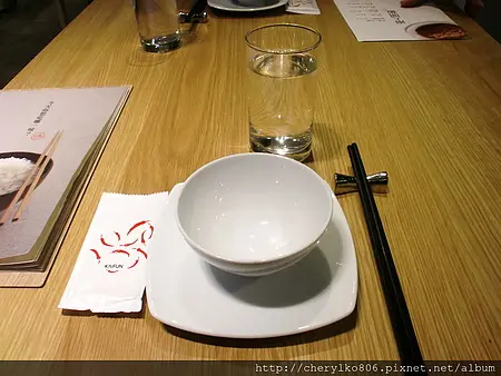 我們被帶至一張兩人座的小桌子,桌上已經擺好餐具及菜單。
