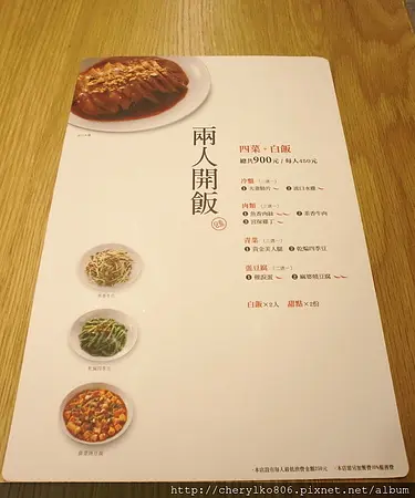 不打緊,開飯推出了【兩人開飯】的套餐,四菜加白飯及甜點,總共900元,另加一成服務費。