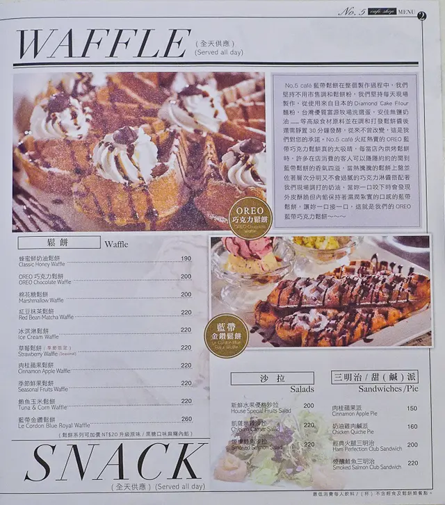 餐點目前以早午餐與鬆餅為主力,全天供應,