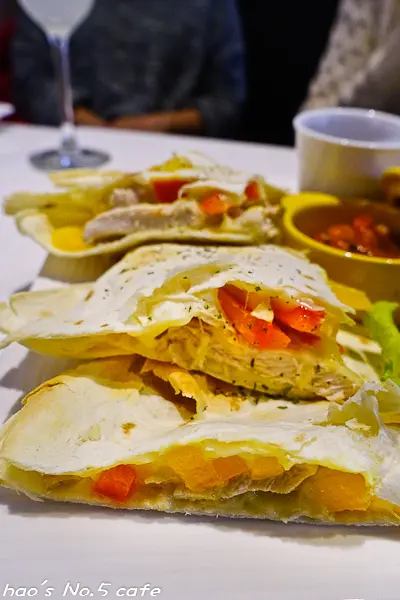 牽絲的起司香滑而濃郁,雞肉肉質細緻清淡,莎莎醬可說是本道餐食的靈魂重點,