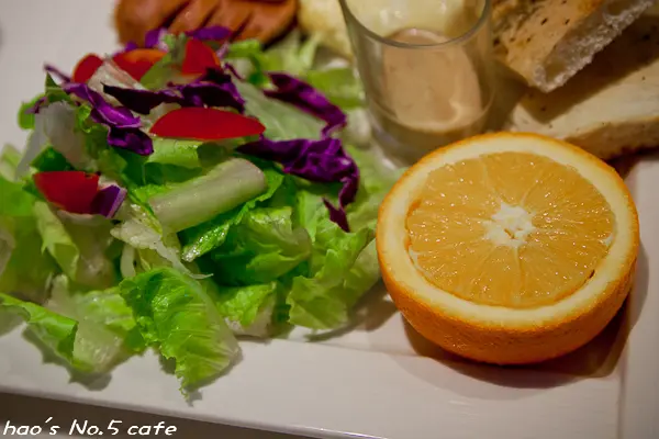 也不用擔心吃得太油膩,因為一樣有清爽的生菜沙拉及柳橙切片,