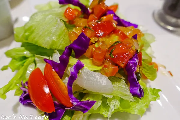 沙拉淋上溫潤香醇的胡麻醬,生菜非常新鮮,清脆爽口,