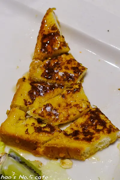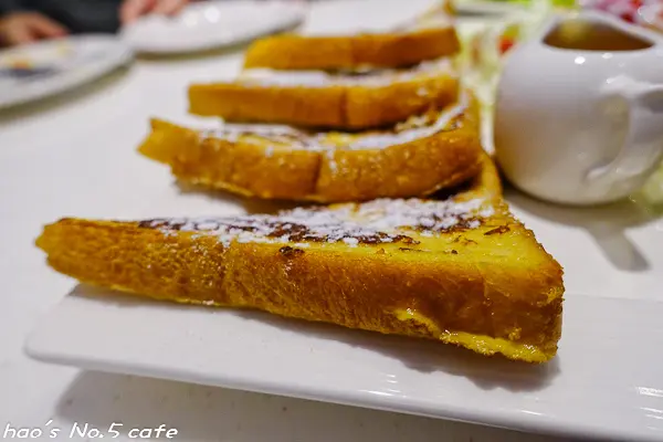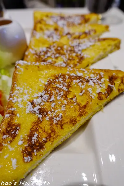 吐司沾滿蛋汁煎成美麗的金黃色~灑上如雪般的細白糖粉,淋上香甜蜂蜜,