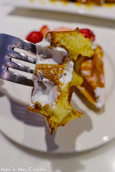 鬆餅外層微酥而香,中層鬆軟具有彈性,濃郁的奶香滿溢口中,好好吃。