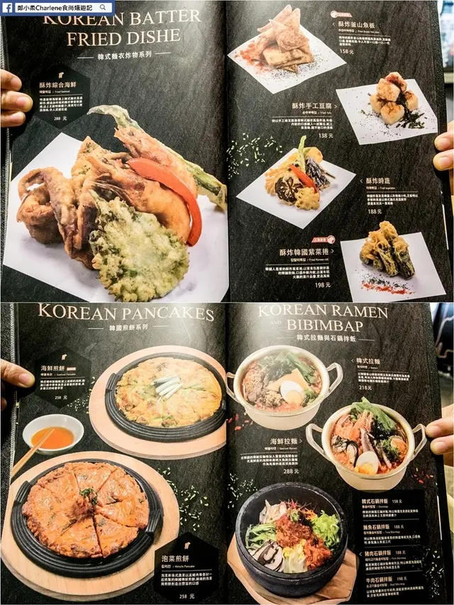 韓式小吃、炸物、韓國煎餅、紫菜包飯、湯品及飲料特調等,