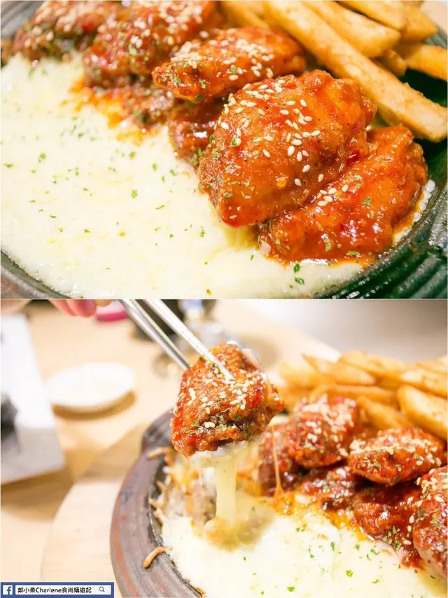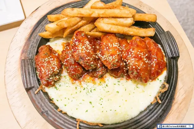 甜甜辣辣好誘人!好好吃!!!旁邊的現炸薯條紮實味美。